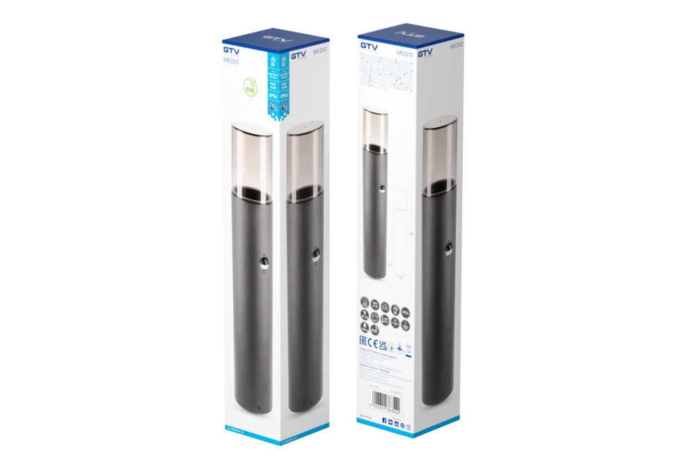 GTV OS-MEDP50P-30 Kerti lámpatest MEDIO-P 50 PIR,E27, MAX.15W,IP54,AC220-240V,50-60Hz,oszlop,grafit