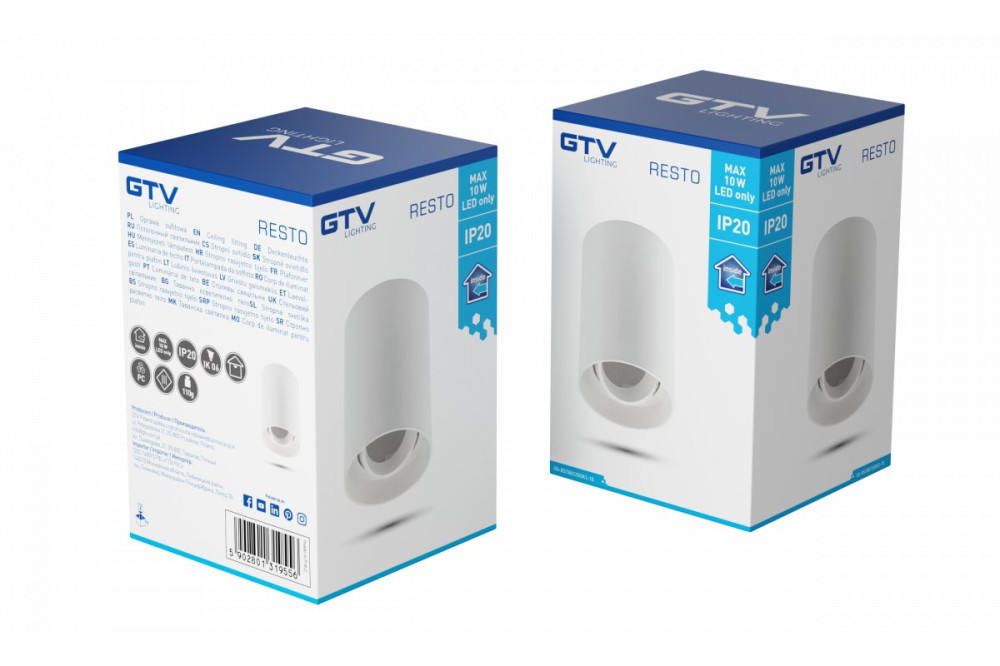 A Resto felületre szerelhető lámpatest teljes egészében polikarbonátból készült. Anyaga rendkívül robusztussá, strapabíróvá és nagy igénybevételnek is ellenállóvá teszi a lámpatestet, míg a műanyag sima felülete a lámpa divatos stílusát adja.