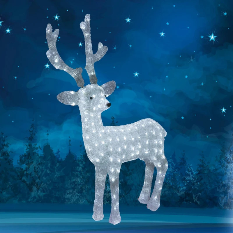 Az akril rénszarvas 200 db hidegfehér/melegfehér LED-del van felszerelve, amelyek választható színben ragyoghatnak.