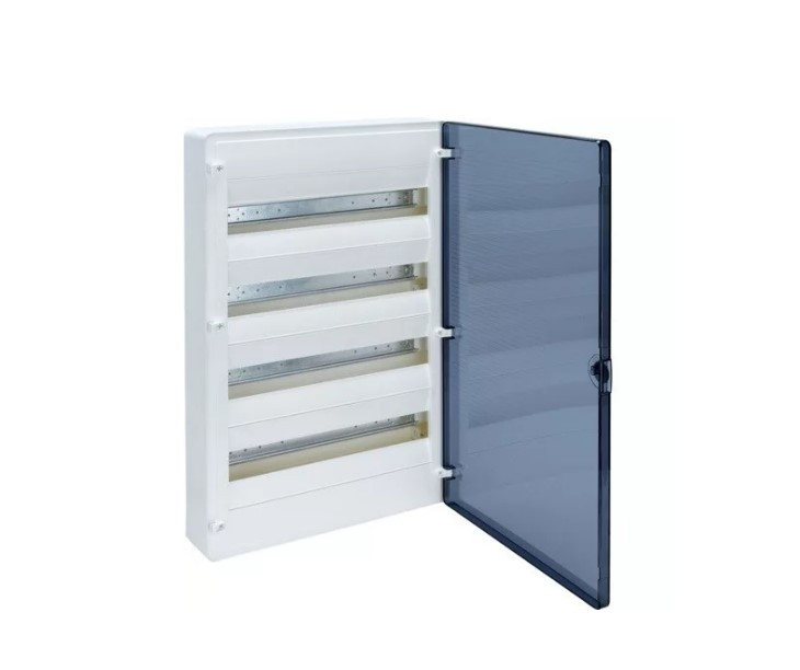 HAGER VS418TD Golf kiselosztó, 4 soros, 72M, falon kívüli, átlátszó ajtó, 647x390x99mm