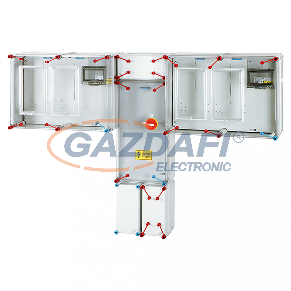HENSEL HCS422 Csoportos mérőhely, két fogyasztó részére mindennapszaki (80 A) és vezérelt (32 A) / H-tarifa (63 A) méréshez, kapcsolóval és NH 00 szakaszolható biztosítóaljzattal,túlfeszültség levezetőhöz előkészítve