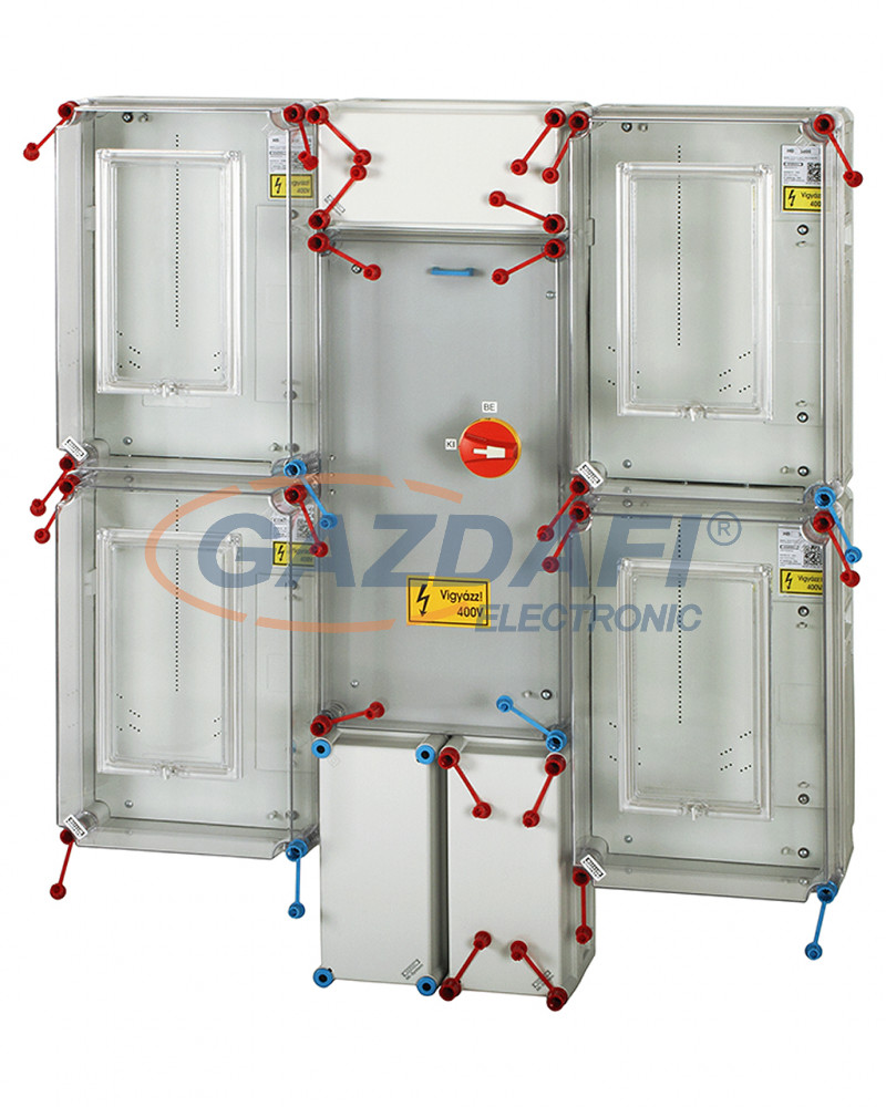 HENSEL HCS441 Csoportos mérőhely, négy fogyasztó részére mindennapszaki mérésre 63 A-ig, kapcsolóval és NH 00 szakaszolható biztosítóaljzattal, túlfeszültség levezetőhöz előkészítve