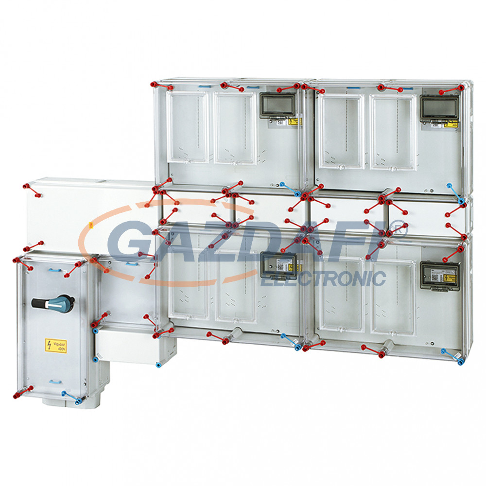 HENSEL HCS442 Csoportos mérőhely, négy fogyasztó részére mindennapszaki (80 A) és vezérelt (32 A) / H-tarifa (63 A) méréshez, biztosítós terheléskapcsolóval (Fuserblock) 125 A-ig, túlfeszültség levezetőhöz előkészítve