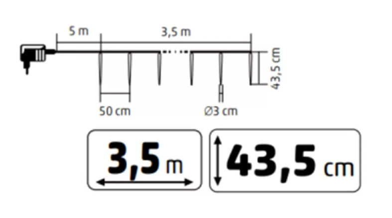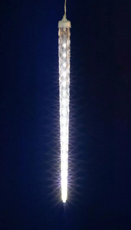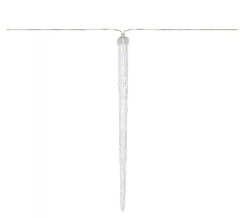 A fényfüzér 8 darab jégcsap formájú elemet tartalmaz, melyek mindegyikében 36 LED világít. A jégcsapok 43,5 cm hosszúak, egymástól 50 cm távolságra helyezkednek el, így a teljes fényfüzér különösen látványos és dekoratív. A hidegfehér fény elegáns, modern hatást kelt, amely tökéletesen illik a téli ünnepekhez, de akár egész évben is stílusos kiegészítő lehet.