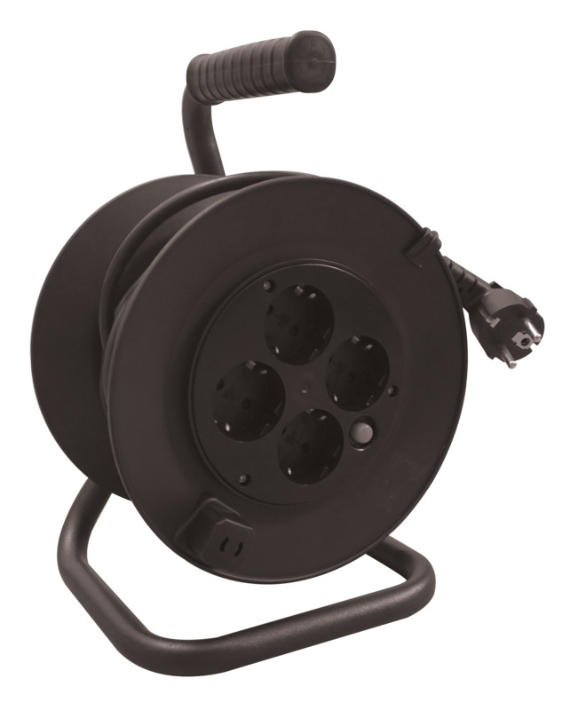 TRACON KD-4/20-B Kábeldobos hosszabbító, fémvázzal 4×SCHUKO, 20m, 250V AC, 16A, 3×1,5mm2, H05VV-F, IP20 általános leírása:
