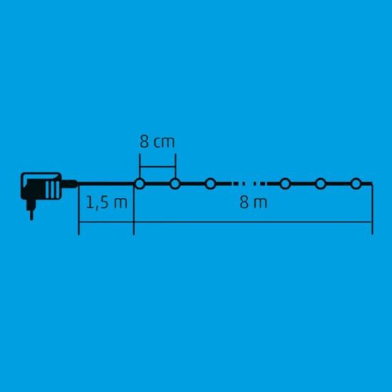 A KII 100B/M pontosan ilyen: egy beltéri kivitelű, állófényű fényfüzér, melyben 100 színes LED gyönyörködteti szemét.