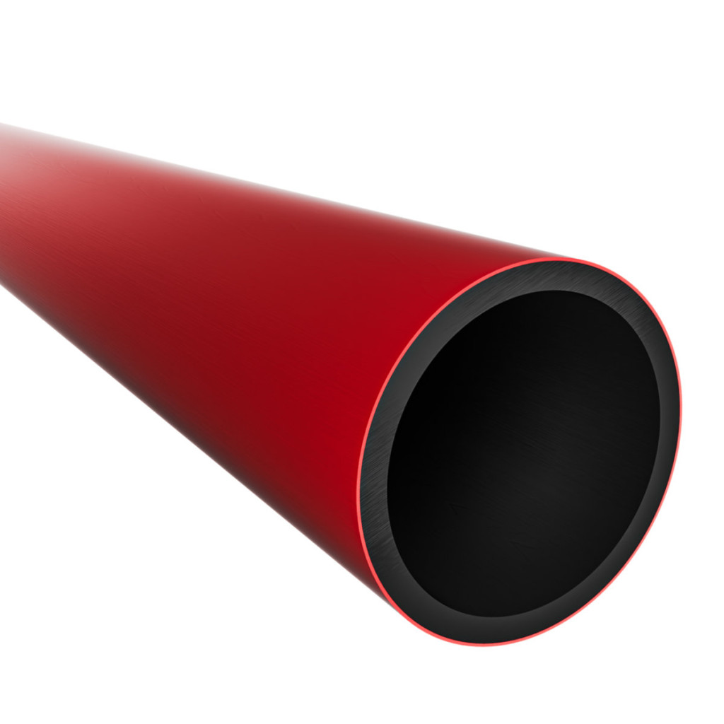 Optical cable protector from HDPE, halogen free, with diameter 40 mm, mechanical resistance 750N/20cm, red, regranulated material, packed on drum, tested under pressure of 1,5 MPa for 1 hour.