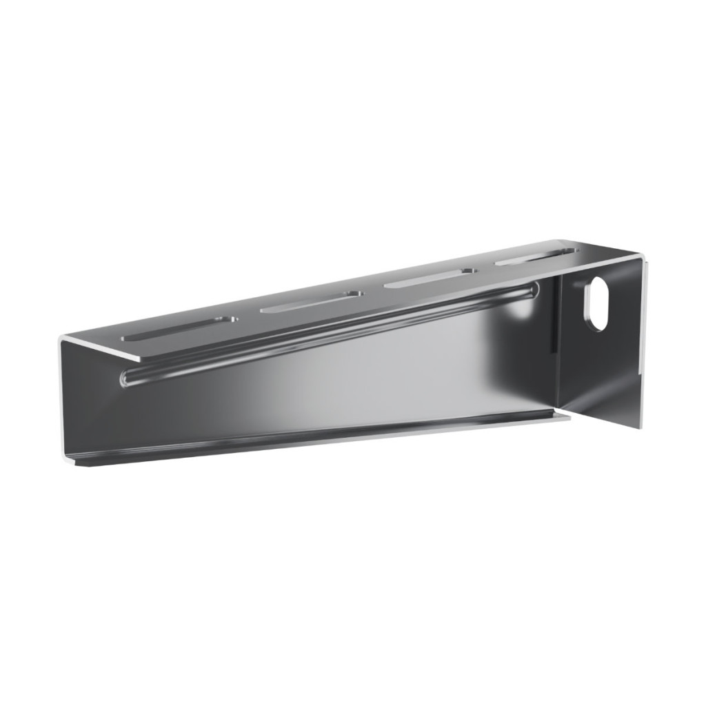 The bracket is designed for mounting cable routes up to 200 mm wide on walls or ceiling profiles. Surface finish - Magnelis®