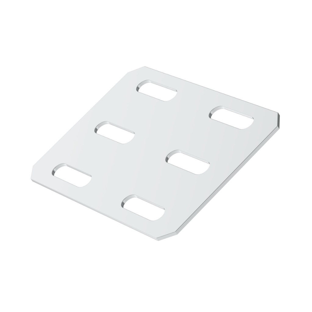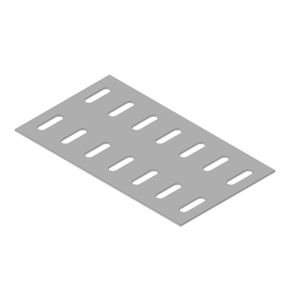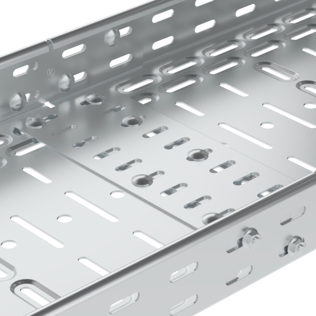 The plates is used to reinforce the bottom of 75 mm wide cable trays connected by couplings. NSM 6X10_GMT bolts are used for fixing. ZM surface finish (galvanizing Zn+Al+Mg) is intended for products with ZM surface finish or hot-dip galvanized products
