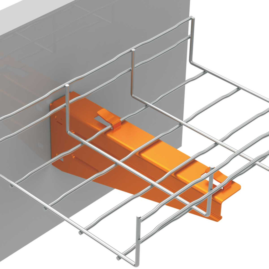 > A huzalrács kábeltálca gyors és megbízható rögzítését a tartó rögzítő füleinek ráhajtásával érhetjük el.