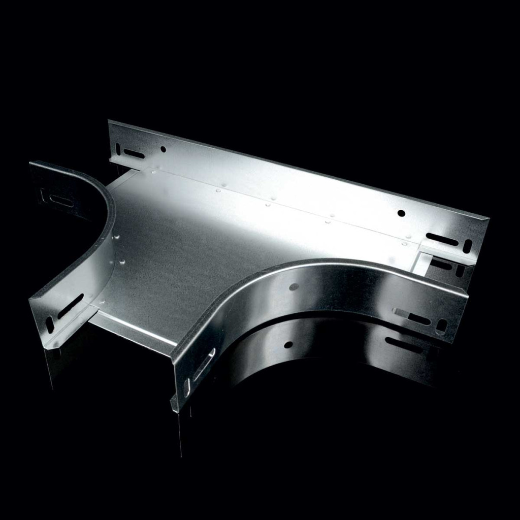 T piece for trays with dimension 100x250 varnished on outer side of the product, allows the branching of cable route