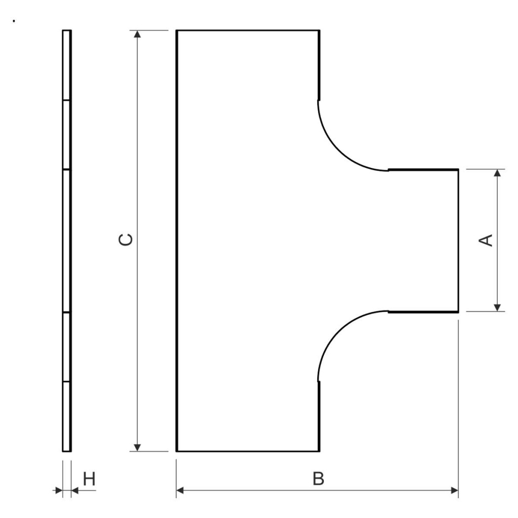 T-piece cover for cable trays with width 500 mm varnished on external circumference