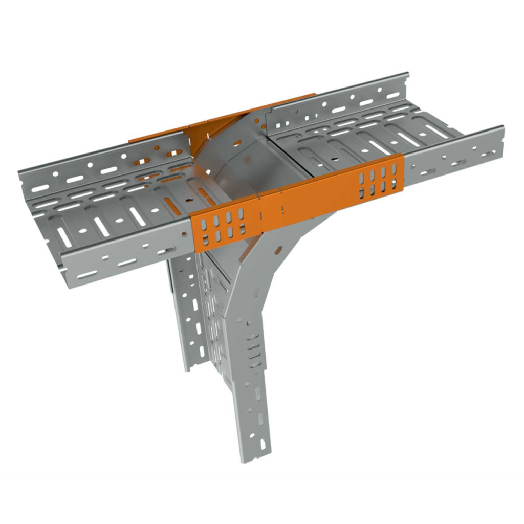 Branch which allows branching of rising cable route to the horizontal and vice versa for cable routes of dimension 50x62, superficial treatment hot dip galvanized