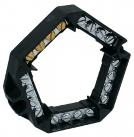 > Öt egymástól elválasztott mezővel, akár négy vezeték összekötéséhez 4 mm2-es keresztmetszetig.