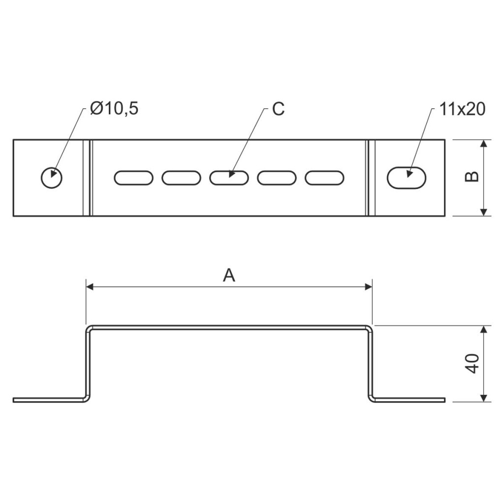 Bracket is used to attach the cable trays with width 600 mm to the floor or the wall. Suitable for hot dip galvanized cable trays