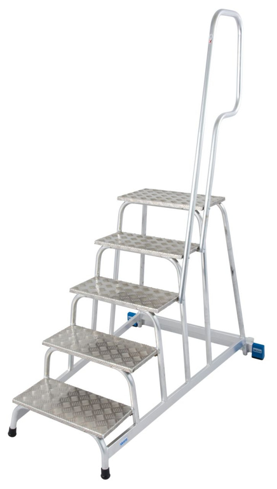 A könnyű, gurítható alumínium szerelődobogó csúszásmentes fokokkal és kapaszkodóval ideális a fokozott igénybevételt jelentő felhasználási területeken.