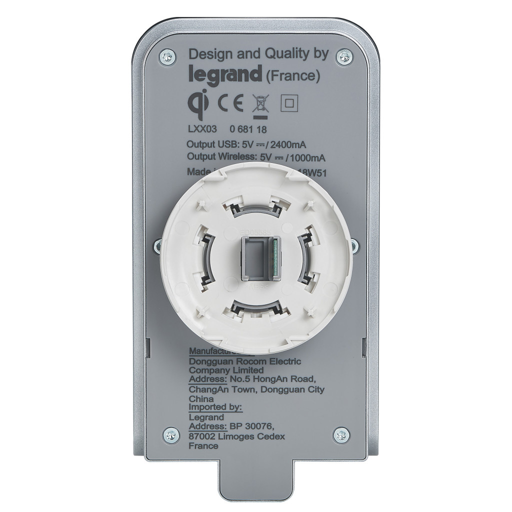 LEGRAND 068118 Céliane indukciós töltő + USB töltőaljzat, dupla USB töltőaljzattal használandó, indukciós töltőáram: 1 A, USB töltőáram: 2,4 A