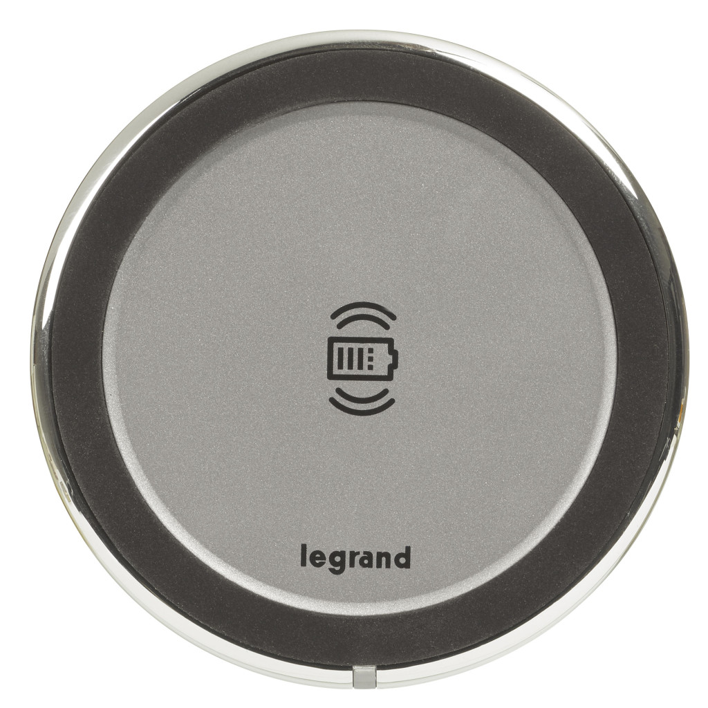 LEGRAND 077640L Program Mosaic bútorba süllyeszthető (Ø80mm) vezeték nélküli töltő, 15 W, IP44, alumínium