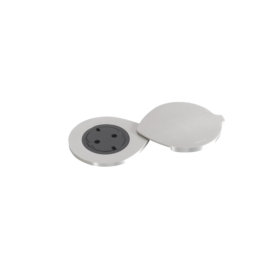 LEGRAND 654728 Incara Disq 60 - bútorba süllyeszthető 2P+F csatlakozóaljzat, 2m kábellel és fedéllel, fekete