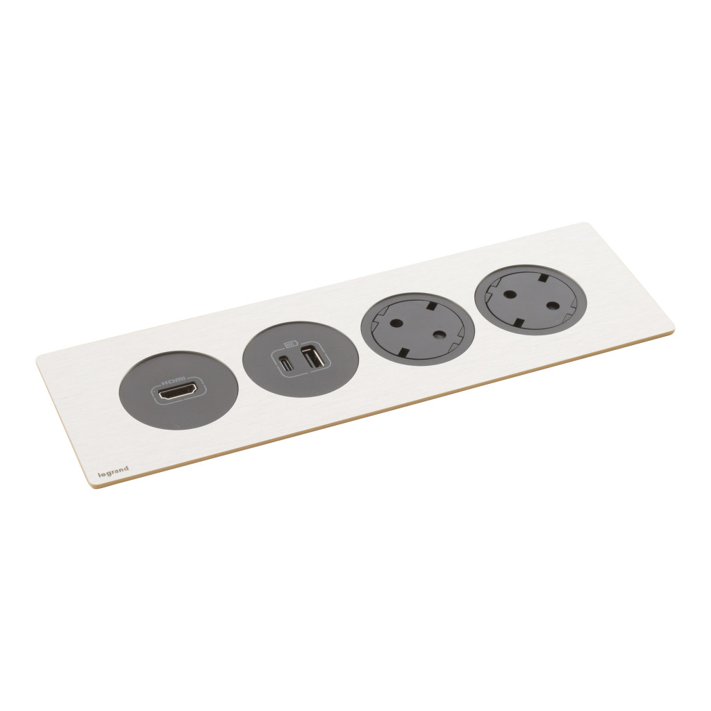 LEGRAND 654751 Incara Disq In 4 - bútorba süllyeszthető 2x2P+F + 1xUSB A+C + 1xHDMI aljzat, 2m kábellel, fekete