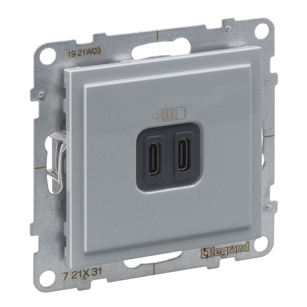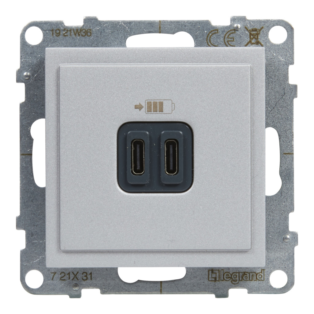 LEGRAND 721331 Suno 2xUSB-C csatlakozóaljzat, 3 A - 15 W, alumínium