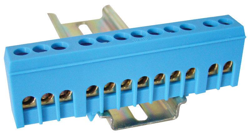 TRACON NPE-ZB Szigetelt földelősín (N/PE), zárt, kék 230/400VAC, 63A, 6×9mm, 12P, IP20