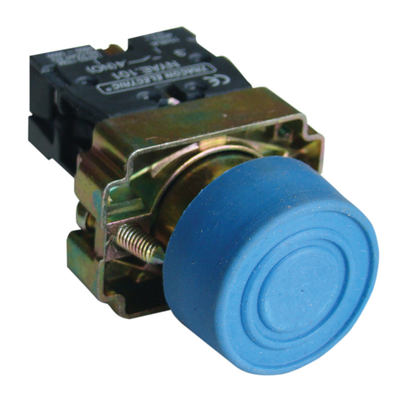 TRACON NYGBP61K Gumiburkolatos nyomógomb, fémalapra szerelt, kék 1×NO, 3A/240V AC, IP55