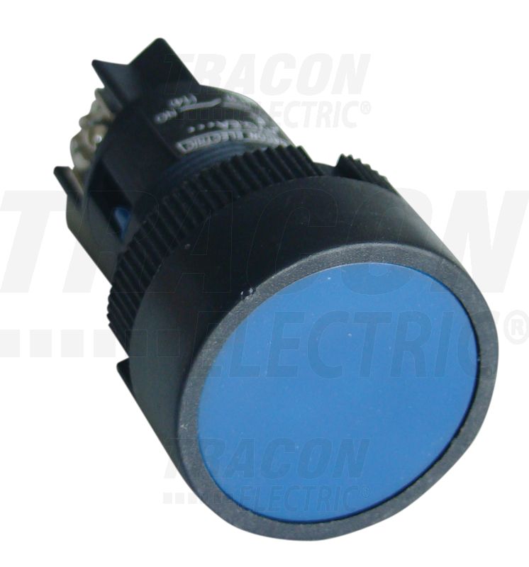TRACON NYGEA161K Nyomógomb, műanyag testű, kék 1×NO, 0,4A/400V AC, IP42, d=22mm