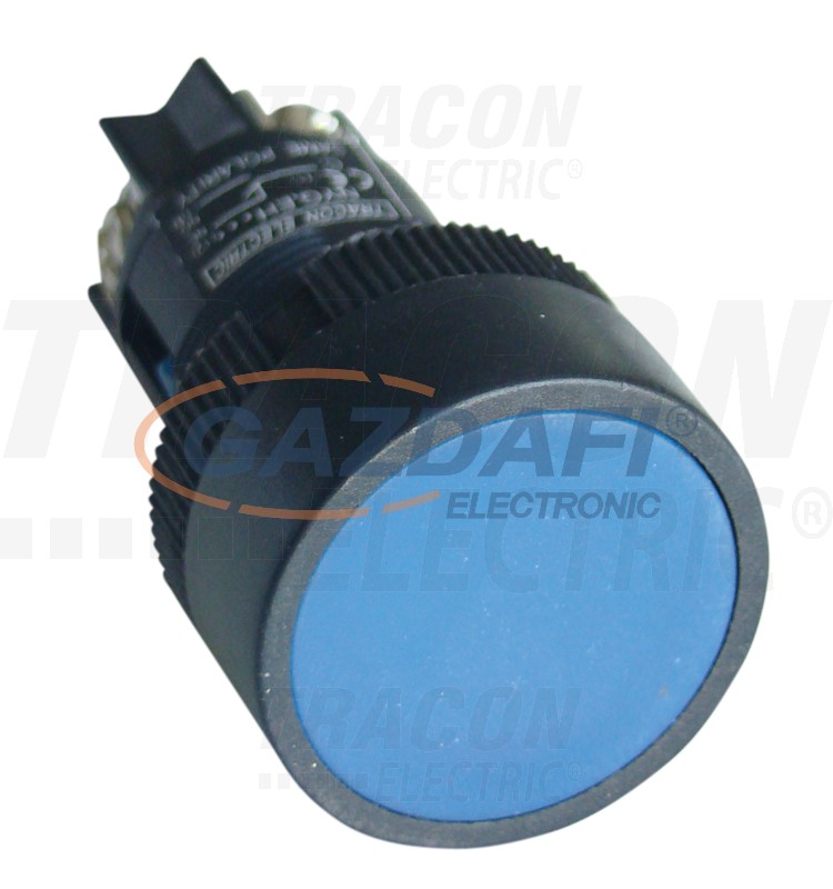 TRACON NYGEH165KT Tokozott nyomókapcsoló, műanyag testű, kék 1×CO, 0,4A/400V AC, IP44, d=22mm