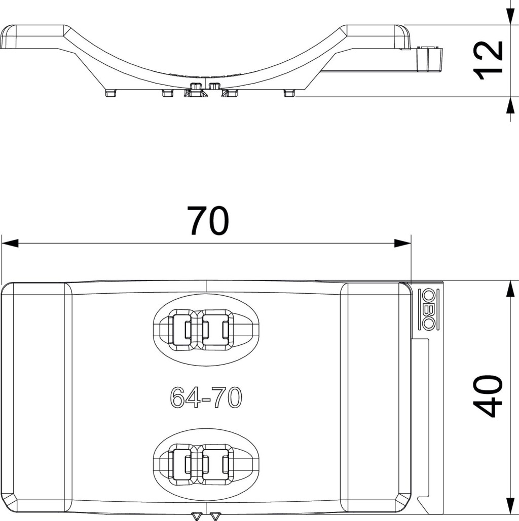 OBO 1198070 2058UW 70 LGR univerzális ellendarab, kettős nyomóvályúvá alakítható, világosszürke 64-70mm