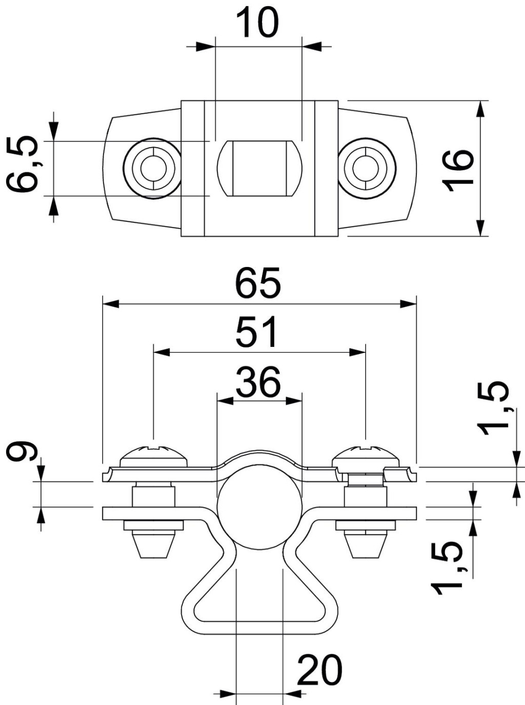 OBO 1362826 ASL 733 36 ALU távtartó kengyel, hosszanti perforációval, 30-36mm