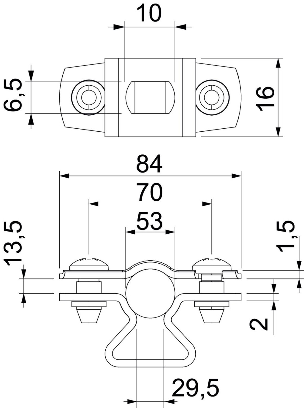 OBO 1362834 ASL 733 53 ALU távtartó kengyel, hosszanti perforációval, 44-53mm