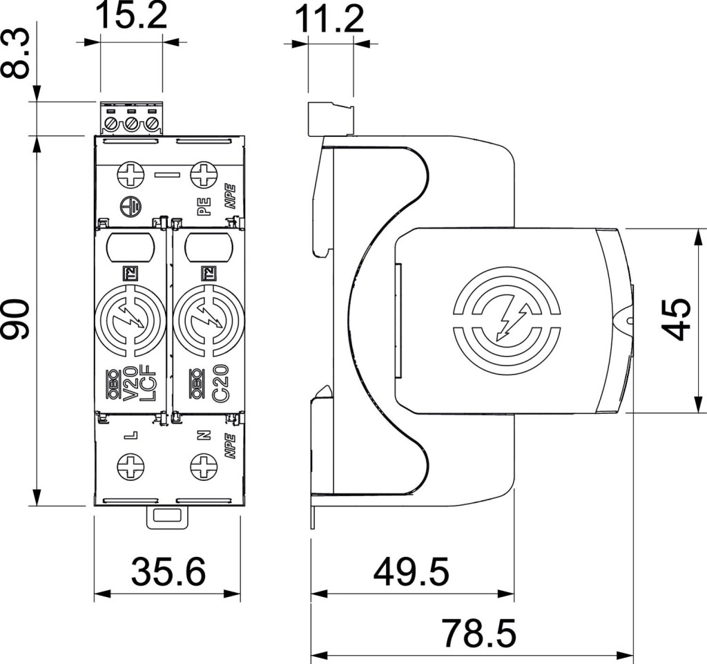 • Pólusonkénti levezetőképesség maximum 40 kA (8/20) a nagyteljesítményű varisztoroknak köszönhetően