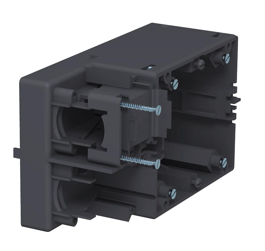 Szerelvénydoboz CEE csatlakozóaljzat felszereléséhez 4-pontos rögzítési sínnel 60 x 60 mm vagy 70 x 70 mm; külső húzáscsökkentővel a köpenyes kábelekhez Ø 18 mm-ig; Excentrikus csavarral a gyors rögzítéshez.