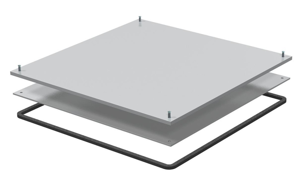 Padlóburkolat fedlap UZD350-3 dobozhoz, a padló alatti húzó- és leágazódobozokra való felszereléshez, a száraz vagy nedves ápolású padlóval ellátott száraz helyiségekben történő használathoz, 5 mm vastag vágásálló fedéllel, részei a következők: