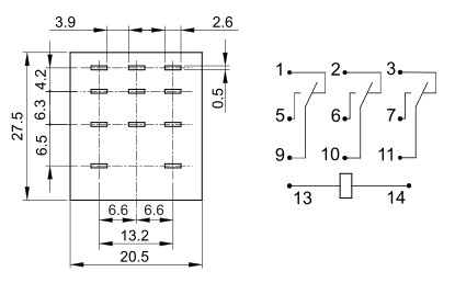 TRACON RM12-48DC Miniatűr relé 48V DC / 3×CO, (3A, 230V AC / 28V DC)