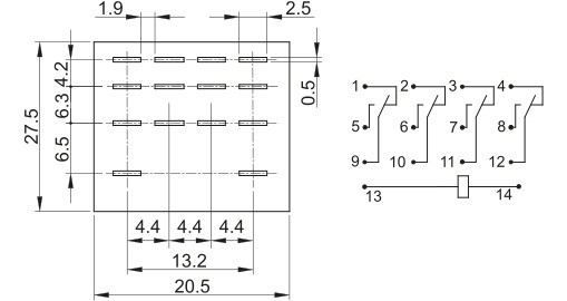 TRACON RM14-220AC Miniatűr relé 230V AC / 4×CO (3A, 230V AC / 28V DC)