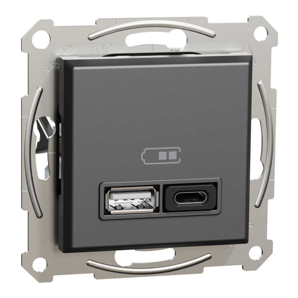 SCHNEIDER EPH2700471 ASFORA Dupla USB gyorstöltő, A+C, 45W, antracit