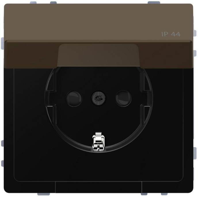 MERTEN 2P+F csatlakozóaljzat, biztonsági zsaluval, csapófedéllel, rugós bekötés, 16A, IP44, D-Life, mokka