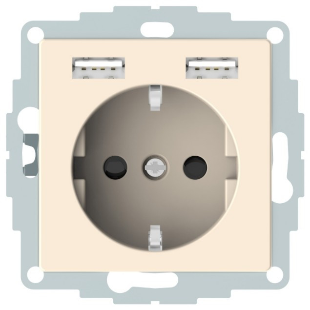 SCHNEIDER MTN2366-0344 MERTEN 2P+F dugalj csatlakozóaljzat, GYV, kettős USB töltővel, rugós bekötés, 16A / 2.4A, krém
