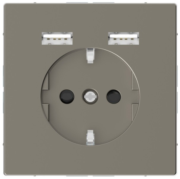 SCHNEIDER MTN2366-6050 MERTEN 2P+F dugalj csatlakozóaljzat, dupla USB töltővel, 16A/2.4A, D-Life, nikkel