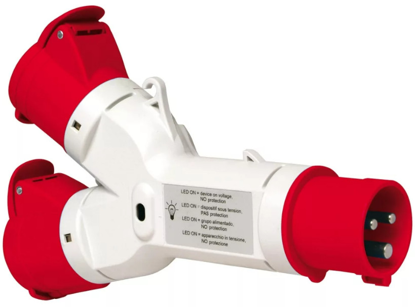 PRATIKA Elosztó adapter, 1 villa-2 aljzat, 3P+F, 16A, 415V, IP44