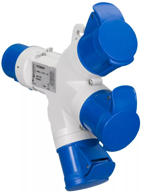 SCHNEIDER PKZM409 PRATIKA Elosztó adapter, 1 villa-3 aljzat, 2P+F, 16A, 250V, IP44