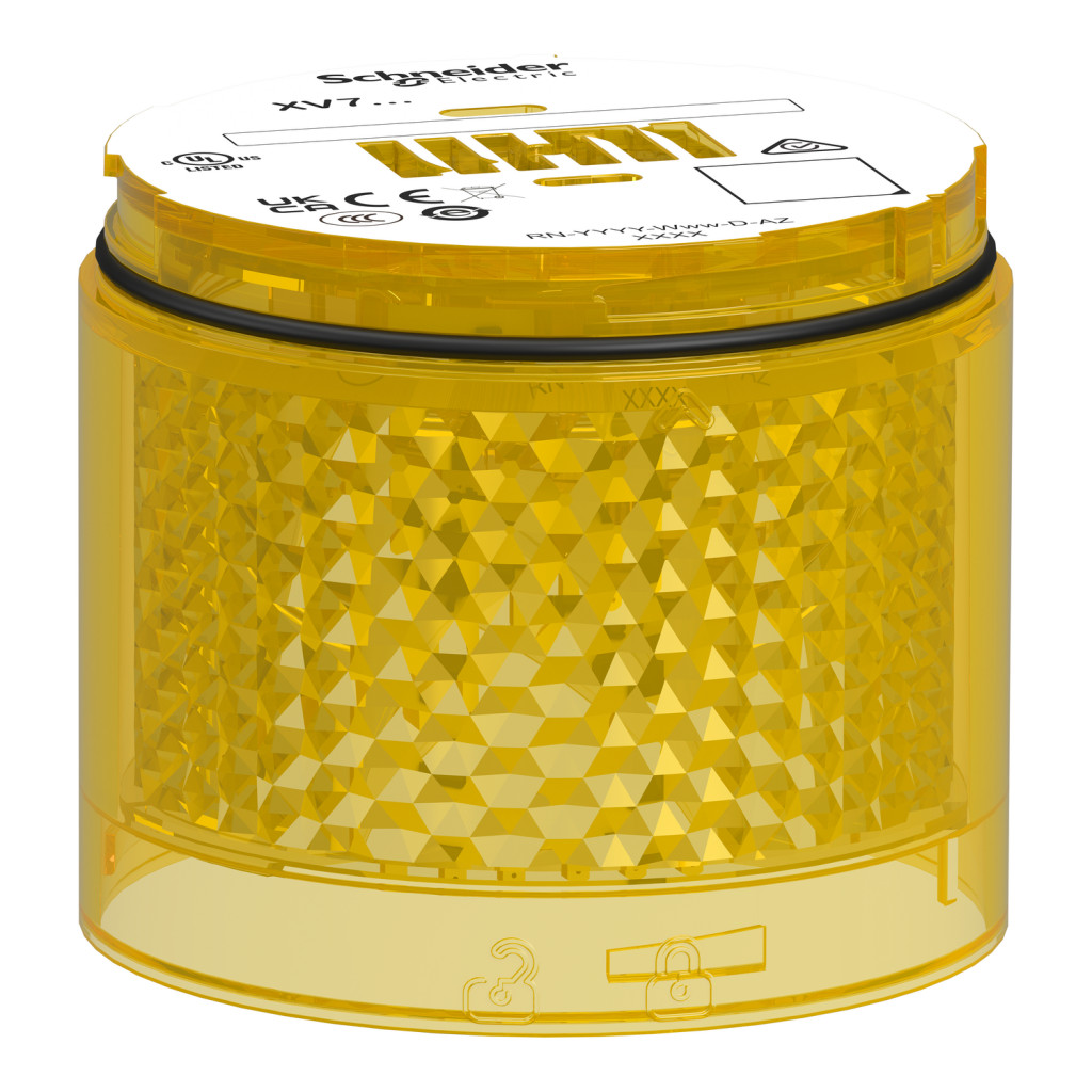 SCHNEIDER XVB7C58 Light Module, Harmony XVB7 Modular Tower Light, Yellow, Ø70mm, Blinking, Colored Lens