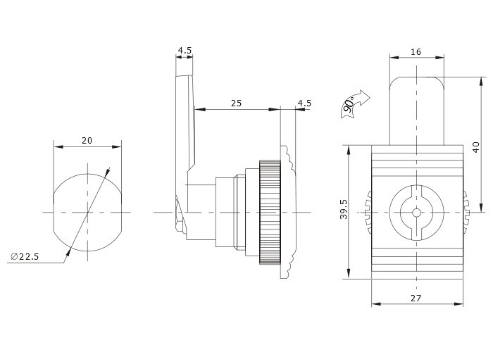 TRACON TFE-ZT T-kulcsos zár TFE.. és TFE..M fali fém elosztószekrényhez D=22.5mm (20mm), 3mm