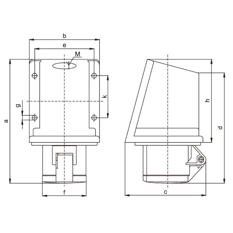 Priza industrială TRACON TICS-114 16A, 400V, 3P + E, 6h, IP44 montabil pe suprafata