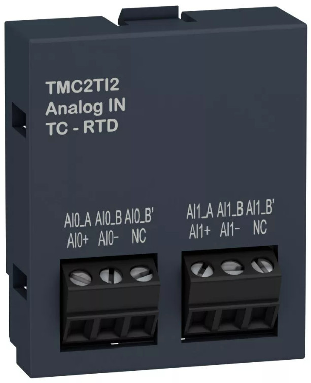 Modicon TMC jelkártya, 2 hőmérséklet bemenet, 14 bit, Pt100, Pt1000, Ni100, Ni1000, hőelem: J-K-R-S-B-T-N-E-C, M221 PLC