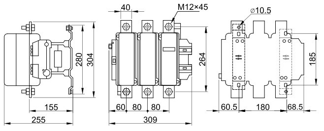 TRACON TR1E620B7 Nagyáramú kontaktor 415V, 50Hz, 620A, 335kW, 24V AC, 3×NO+1×NO