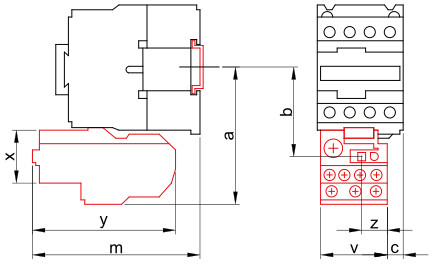 TRACON TR2HD1305 Termikus túláramvédelmi relé TR1D kontaktorokhoz 690V, 0-400Hz, 0,63-1A, 1×NC+1×NO