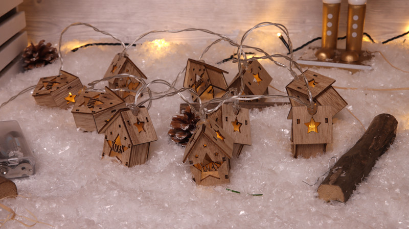 TRACON CHRSH10WW LED karácsonyi lánc,házikó,fa,elemes (X23022) Timer 6+18h,10LED, 3000K, 2xAA
